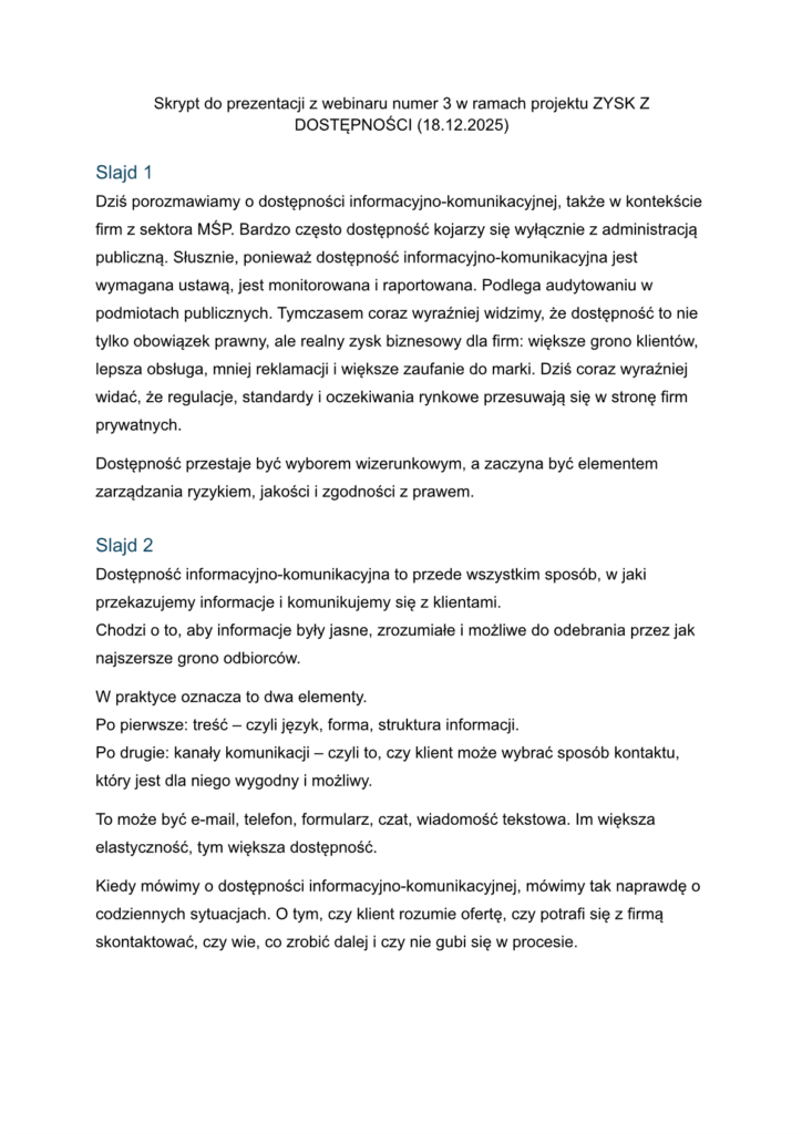 Jeśli chcesz dowiedzieć się jeszcze więcej i poszerzyć swoją wiedzę z zakresu dostępności, zapraszamy Cię na nasze bezpłatne szkolenie. Dowiesz się, jak projektować uniwersalne produkty i usługi, a dzięki temu dostosujesz się do zachodzących zmian i zyskasz nowe możliwości rozwoju swojej firmy.